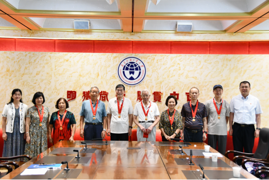 6月27日,伟德国际betvlctor1946在白云山校区行政楼第一会议室举行“光荣在党50年”纪念章颁发仪式暨座谈会,11名老党员荣获纪念章。校党委副书记、校长闫相斌为老党员代表颁发纪念章。组织部、伟德国际betvlctor1946主要负责人,老党员代表等参加会议。
