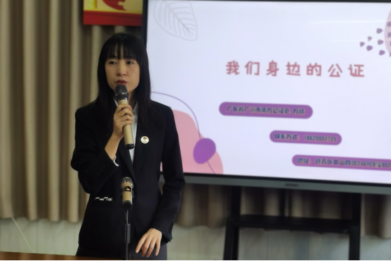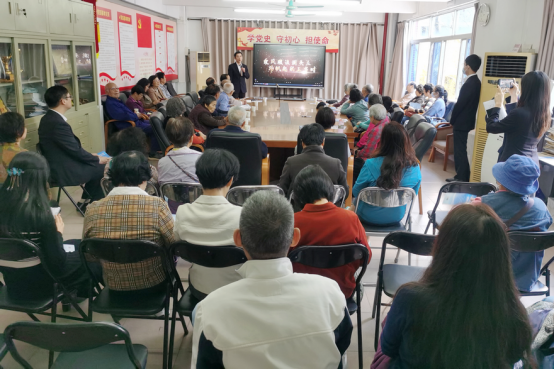 公证员吴晓航介绍了广州市南方公证处的概况和服务理念。公证员万婧结合现实生活案例,对遗嘱公证、遗赠扶养协议公证、意定监护公证、委托公证、夫妻财产协议公证等分别进行阐述,特别是对与老同志息息相关的“独生子女能不能继承父母的全部遗产”问题进行了生动形象的讲解。