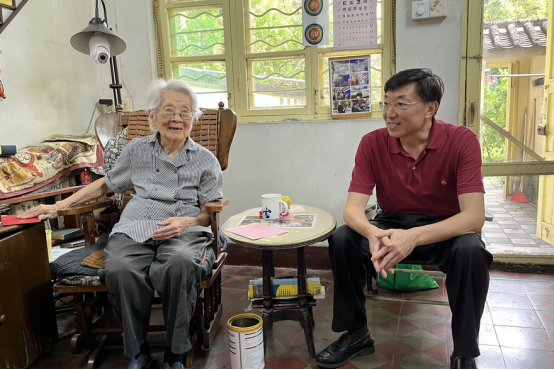 在2022年老年节(10月4日)来临之际,校党委副书记李云明带队走访慰问百岁老教师刘达康教授,给刘教授送祝福,致送慰问金和慰问品,祝刘教授健康长寿。