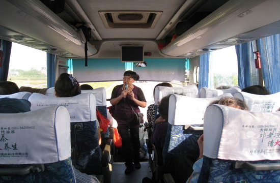 本网讯11月13日,又是一个秋高气爽的好日子。离退处组织退休教工一行39人,赴清远连南、连州旅游。一路上,在“校园歌星”戴晓春的带动下,车厢里欢歌笑语。四个多小时的车程眨眼飞过。