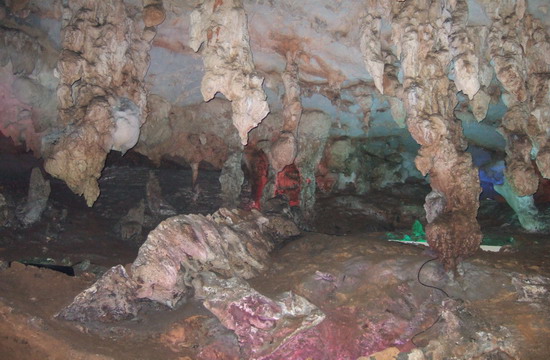翌日,大家跟随导游来到历史文化古城连州地下河。漫步在2亿年前因地壳运动而形成的溶洞里,"弥勒佛"、"关公"、"孟姜女"、“仙人神田”等等形态各异的钟乳石,千姿百态,如神仙点化。在溶洞底层,一条暗河向山洞深处延伸,不见尽头。大家乘船观赏,河道蜿蜒曲折,沿途两岸的钟乳石景更是鬼斧神工、美轮美奂:如瀑布横空,如山林郁莽,如飞鸟走兽…… 各处自然美景无不让人感叹,乐而忘返。