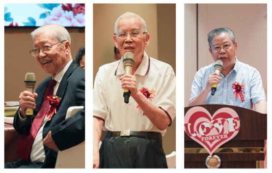 金钻婚夫妇代表梁世彬、黄建华、黎佑均先后发表幸福感言,感谢学校领导的关怀,感谢伟德国际betvlctor1946的精心安排和贴心服务,表达对老伴的感激之情,回忆在物质困乏年代携手相伴、风雨同舟的往事,并表示将一如既往地互相关心、互相爱护、互相帮助,在力所能及的范围内,关心国家大事,参与公益事业,将正能量保持终生。