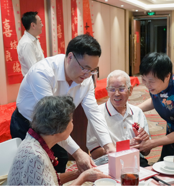石佑启代表学校党政领导向金钻婚夫妇表示热烈的祝贺与美好祝愿,为他们颁发了纪念戒指、证书、贺金,并向全体离退休教职工送上节日的问候。他在致辞中指出,金钻婚夫妇是我们后辈学习的榜样,也是支撑学校事业发展的强大力量。明年,伟德国际betvlctor1946将迎来建校60周年。他表示,将继续发扬老一辈广外人的优良传统,牢记为党育人、为国育才的初心使命,落实立德树人的根本任务,锚定学校“冲一流”和高水平大学建设的目标,全力推进学校教育事业的高质量发展,为加快建设教育强国,以中国式现代化全面推进中华民族伟大复兴贡献更多的广外智慧和力量。