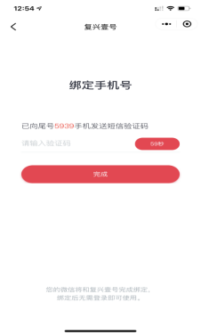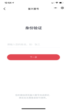 三、在身份验证页面输入党员姓名,点击下一步,并输入复兴壹号平台发送的手机验证码,点击完成