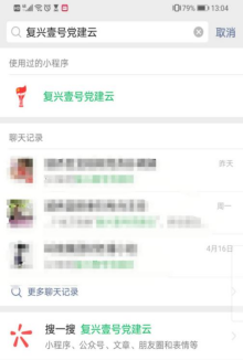 一、在微信中搜索微信小程序“复兴壹号党建云”,并点击