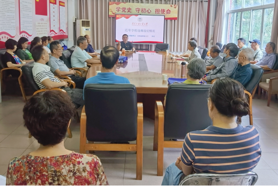 苏奕简要介绍了开展党纪学习教育的目标要求、学习重点、《条例》的框架结构等,重点围绕党的十九大以来高校干部、教师发生的违规违纪典型案例,受处分之后酿成的后果,以及学校纪检监察工作的发展状况等三个方面进行详尽的阐述与深刻的剖析。他表示,学校纪检监察干部一定会忠诚履职、干净担当,请大家放心。他强调,党纪学习教育要坚持原原本本读《条例》,希望老同志活到老、学到老,在传承家风家教、营造学校的良好氛围方面多出谋划策,也恳请老同志做好义务监督员。本次警示教育内容丰富,资料详实,发人深省,用身边人身边事,让大家明底线、知敬畏,具有很强的针对性和指导性。