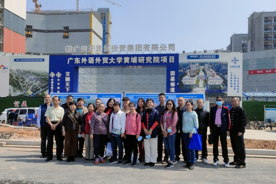 在知识城校区管委会(筹)办公室副主任汤程荣(主持工作)等陪同下,老党员们兴致勃勃地参观了知识城校区黄埔研究院建设工地、中新广州知识城发展规划馆、海丝中心广外黄埔研究院等,深入了解知识城新校区整体规划、配套设施、工程进展、周边布局,以及知识城的发展历程、规划愿景等,并就知识城新校区的建设、特色规划等方面进行交流。
